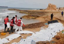 5 bodies of migrants washed ashore in east of Libya’s capital Tripoli, police officer...