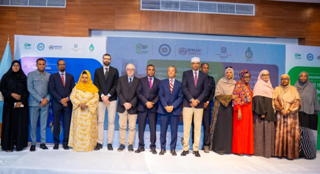 Somalia’s Second Deputy Prime Minister Jibriil Haji Abdirashiid Abdi led the ceremony, joined by State Minister of Health Maryan Mohamed Hussein, as certificates of appreciation were presented to members of the Italian delegation.