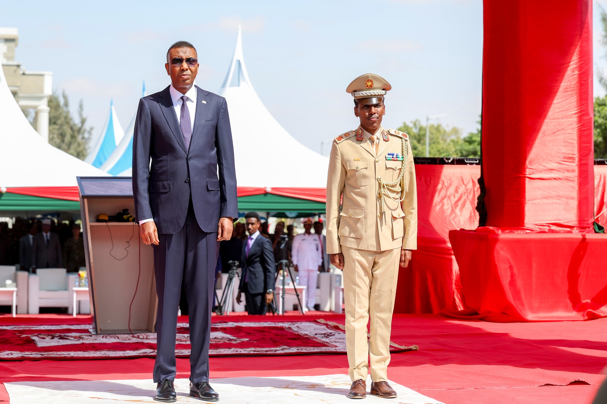 Muqdisho – Ra’iisul Wasaaraha Xukuumadda Jamhuuriyadda Federaalka Soomaaliya, Mudane Xamsa Cabdi Barre, ayaa maanta xilka u kala wareejiyey Taliyaha cusub ee Ciidanka Xoogga Dalka Soomaaliyeed, Sarreeye Guuto Ibraahim Maxamed Maxamuud, iyo Taliyihii hore, Sarreeye Gaas Odawaa Yuusuf Raage.