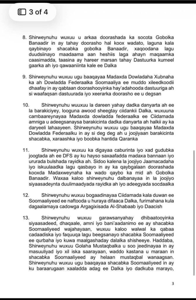 Ugu dambayn, war-murtiyeedku wuxuu ku baaqay diyaarinta wadahadal qaran oo ballaaran oo lagu soo celinayo kalsoonida siyaasadeed, lagu xoojinayo nidaamka federaalka, laguna xaqiijinayo mustaqbal xasilloon oo ay wada leeyihiin dhammaan shacabka Soomaaliyeed.