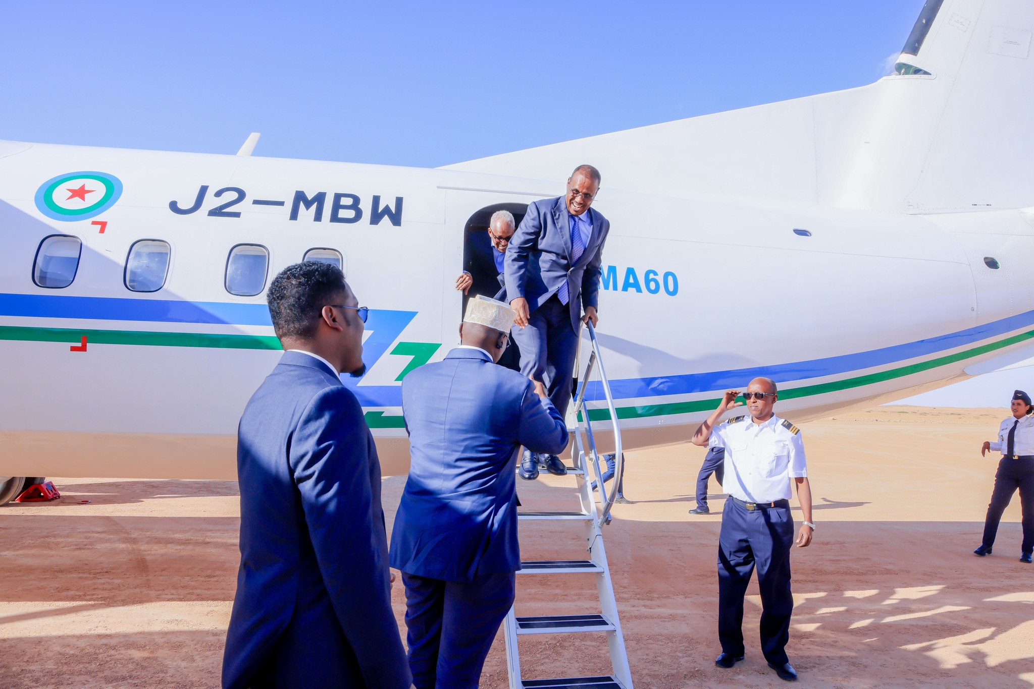 Wafdiga Jabuuti ayaa si diirran loogu soo dhoweeyay garoonka diyaaradaha Laascaanood, waxaana halkaasi ku qaabilay Madaxweynaha Dowlad-Goboleedka Waqooyi Bari Soomaaliya, Mudane Cabdulkaadir Axmed Aw-Cali (Firdhiye), ka hor inta aan loo galbin gudaha magaalada Laascaanood.