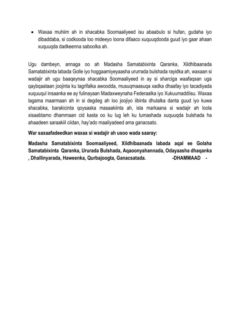 War-murtiyeedka Shirka Golaha Samatabixinta iyo Shacab ka caraysan Boobka dhulka
