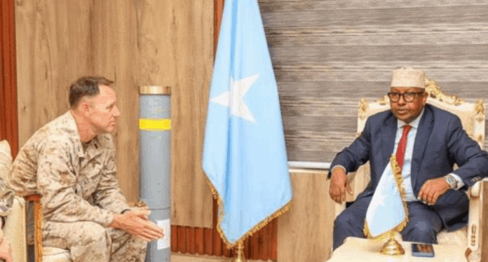 Muqdisho, Soomaaliya – Wasiirka Gaashaandhigga Soomaaliya, Axmed Moallim Fiqi, ayaa la kulmay Taliyaha Howlgallada Gaarka ah ee Isku-dhafan ee Afrika Bari (JSOTF-EA), Koloneel Ed Norris oo xilka ka taga.