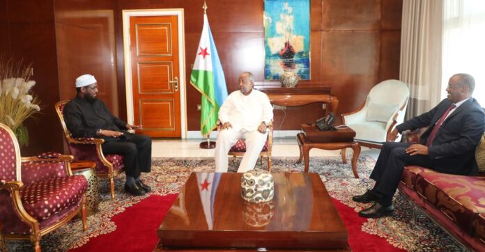 Djibouti, — Wasiirka Wasaaradda Awqaafta iyo Arrimaha Islaamka ee Xukuumadda Jamhuuriyadda Federaalka Soomaaliya, Mudane Sheekh Mukhtaar Roobow Cali, oo booqasho rasmi ah ku joogay Jamhuuriyadda Djibouti toddobaadkan, ayaa kulan la yeeshay Madaxweynaha Jamhuuriyadda Djibouti Mudane Ismaaciil Cumar Geelle.
